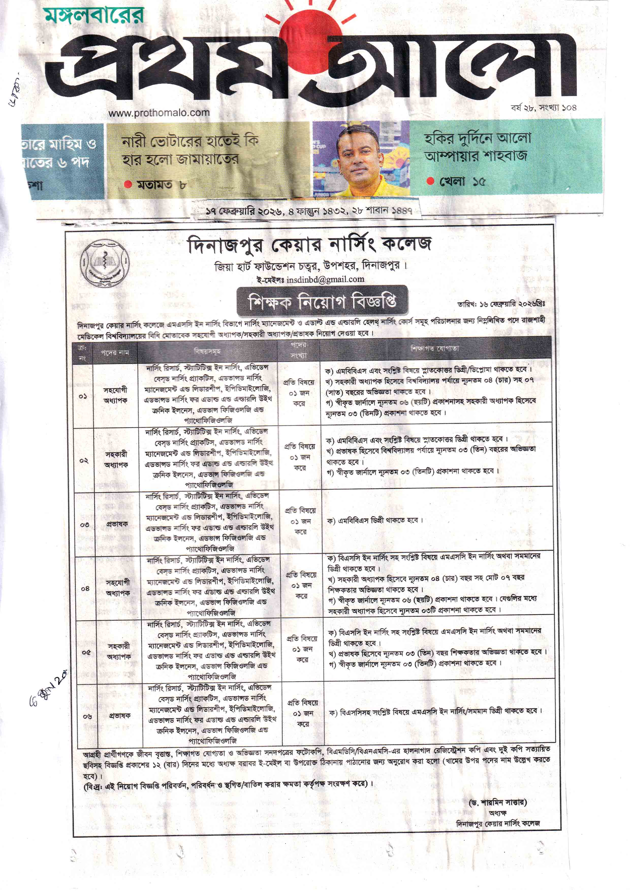 শিক্ষক নিয়োগ বিজ্ঞপ্তি