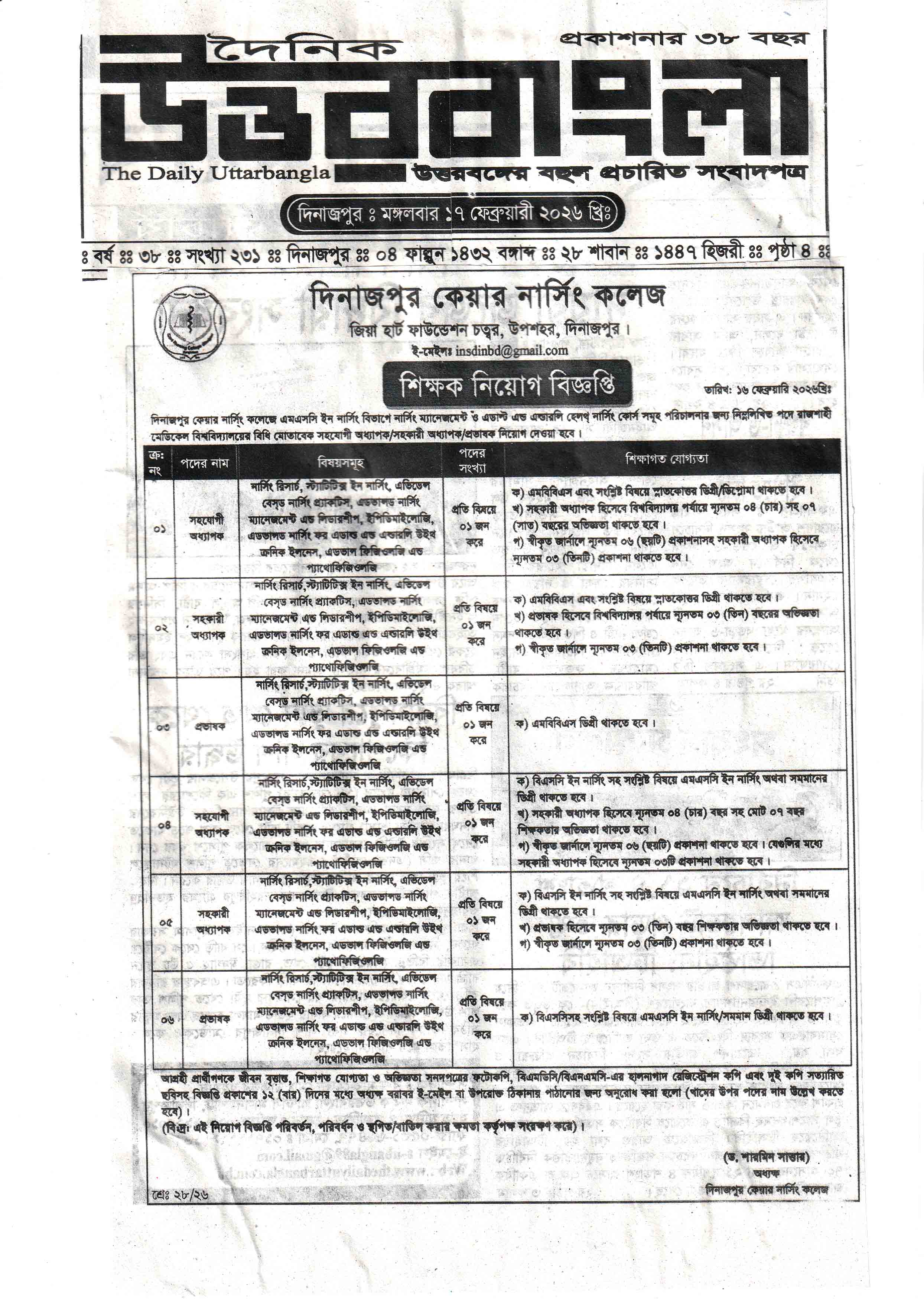 দিনাজপুর কেয়ার নার্সিং কলেজে আপনাকে স্বাগতম ।।